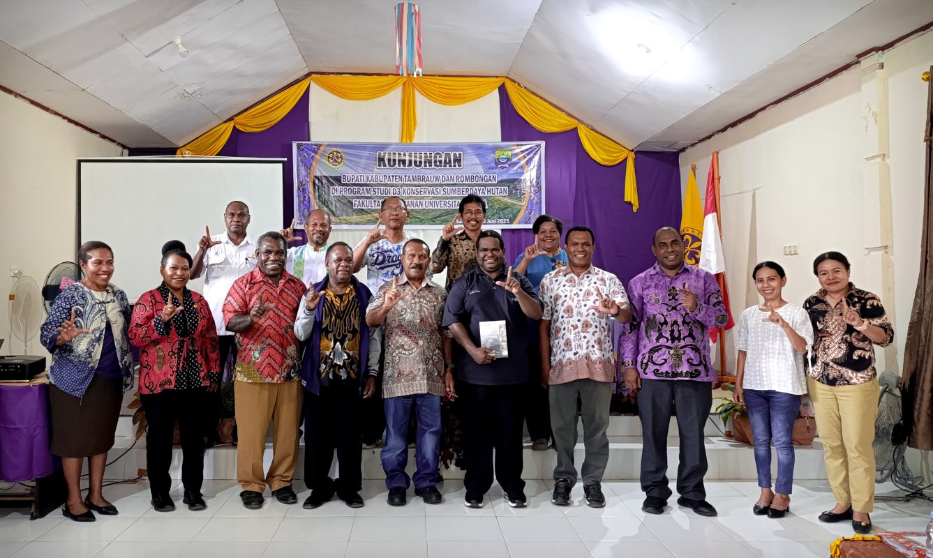 Sausapor13 Juni 2025, Program Studi D3 Konservasi kelas Sausapor mendapat kunjungan dari Bupati Tambrauw Yeskiel Yesnath, S.E., M.Si, Sekretaris Daerah Tambrauw M. Zen Hayatuddin,S.Ip.,MM, Bapak Gariel Asem Mantan Bupati Tambrauw Periode 2012-2022 dan diterima oleh perwakilan Fahutan UNIPA melalui Wakil Dekan 2 Dr. Yubelince Runtuboi, S.Hut., M.Sc, Wakil Dekan 3 Dr. Petrus Dimara, S.Hut., M.Sc, dan Kabag Akademik dan Tata Usaha Loisa Adriani Ick, S.Sos. Dalam kunjungan ini, Bupati Tambrauw dan rombongan mendapatkan informasi terkini terkait perkembangan pelaksanaan kegiatan akademik prodi D3 Konservasi yang telah di mulai sejak tahun 2022. Seperti diketahui bahwa Tambrauw yang telah dikenal sebagai Kabupaten Konservasi membuat kebijakan di sektor pendidikan dengan membuka kelas D3 Bidang Konservasi kerjasama dengan Fakultas Kehutanan UNIPA. Bupati dalam sambutannya mengapresiasi pendirian dan pelaksanaan PRODI D3 Konservasi di Sausapor dan akan terus mendukung demi mewujudkan visi Kabupaten Tambrauw sebagai kabupaten konservasi berbasis sumber daya unggul.