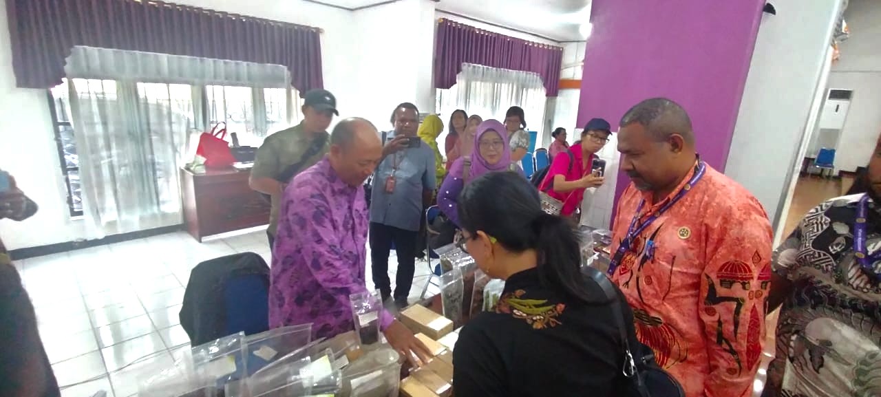Manokwari, 20 Juli 2025. Bertempat di Aula Utama UNIPA Wamen DIKTISAINTEK Prof. Stella Christie melakukan kunjungan ke Kampus Utama Universitas Papua dan diterima oleh Rektor UNIPA Dr. Hugo Warami beserta civitas akademika UNIPA. Yang menarik dan tidak kalah penting dalam kunjungan Wamen DIKTISAINTEK ini adalah adanya pameran dan paparan terkait produk dan teknologi atau inovasi yang telah dihasilkan oleh akademisi UNIPA. Fakultas Kehutanan di wakili oleh Dr. Susilo Budi Husodo menampilkan beberapa produk dari hasil teknologi hasil hutan berupa produk herbal seperti Teh katuk hutan (herbal anti kanker), minyak buah merah, minyak lawang, rumput kebar. Terdapat juga produk hasil pemanfaatan limbah industri kayu dijadikan produk seperti papan kertas dengan perekat gypsum, paving blok dari serbuk kayu, semen, dan bahan pewarna alami dari Akasia (Tanin, warna merah kecoklatan), dan dari kayu Merbau untuk pewarna alami merah kehitaman. Dr. Budi juga sampaikan bahwa Pemanfaatan Masohi sedang ditulis dalam bentuk book chapter.