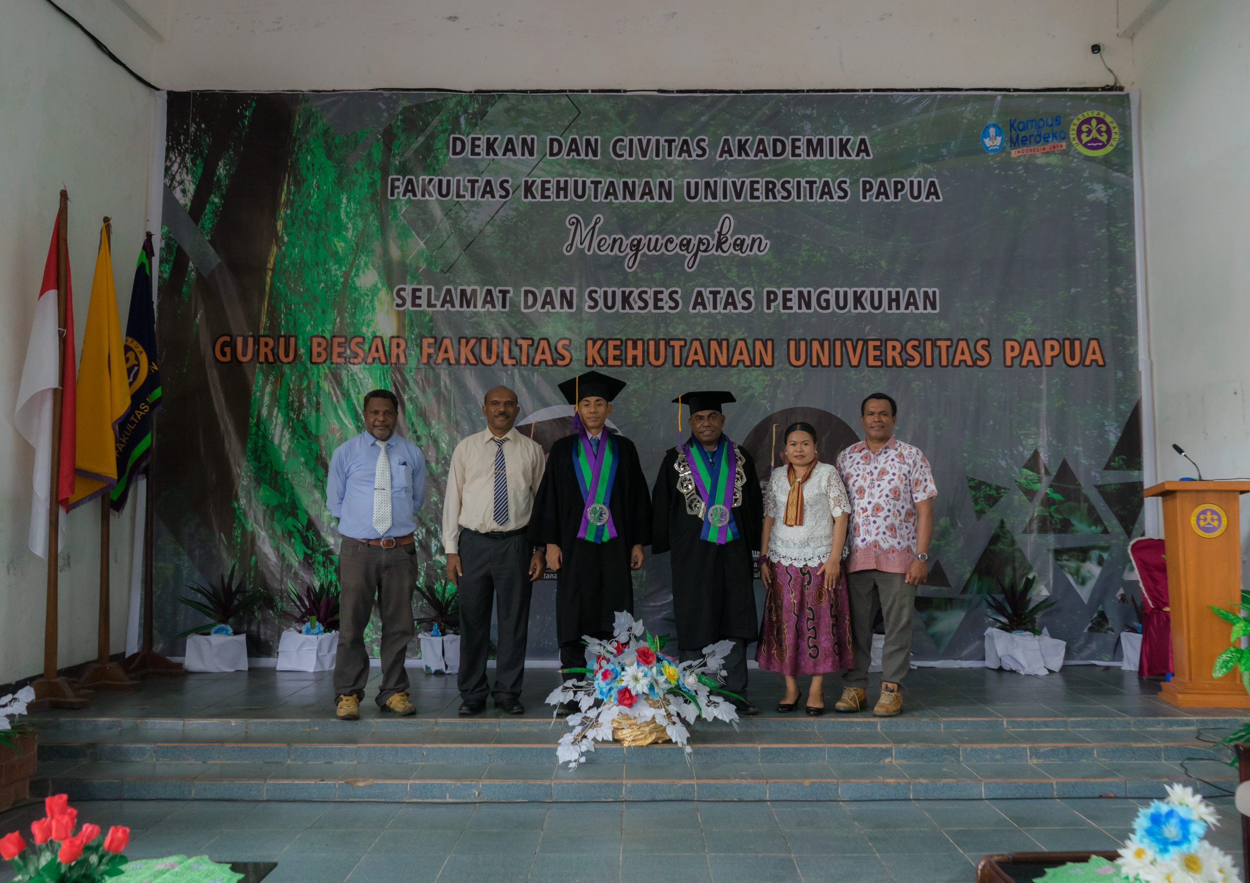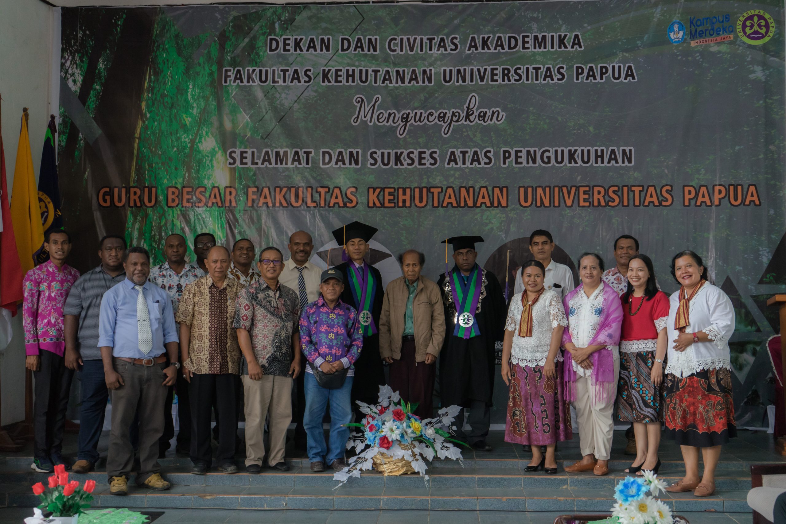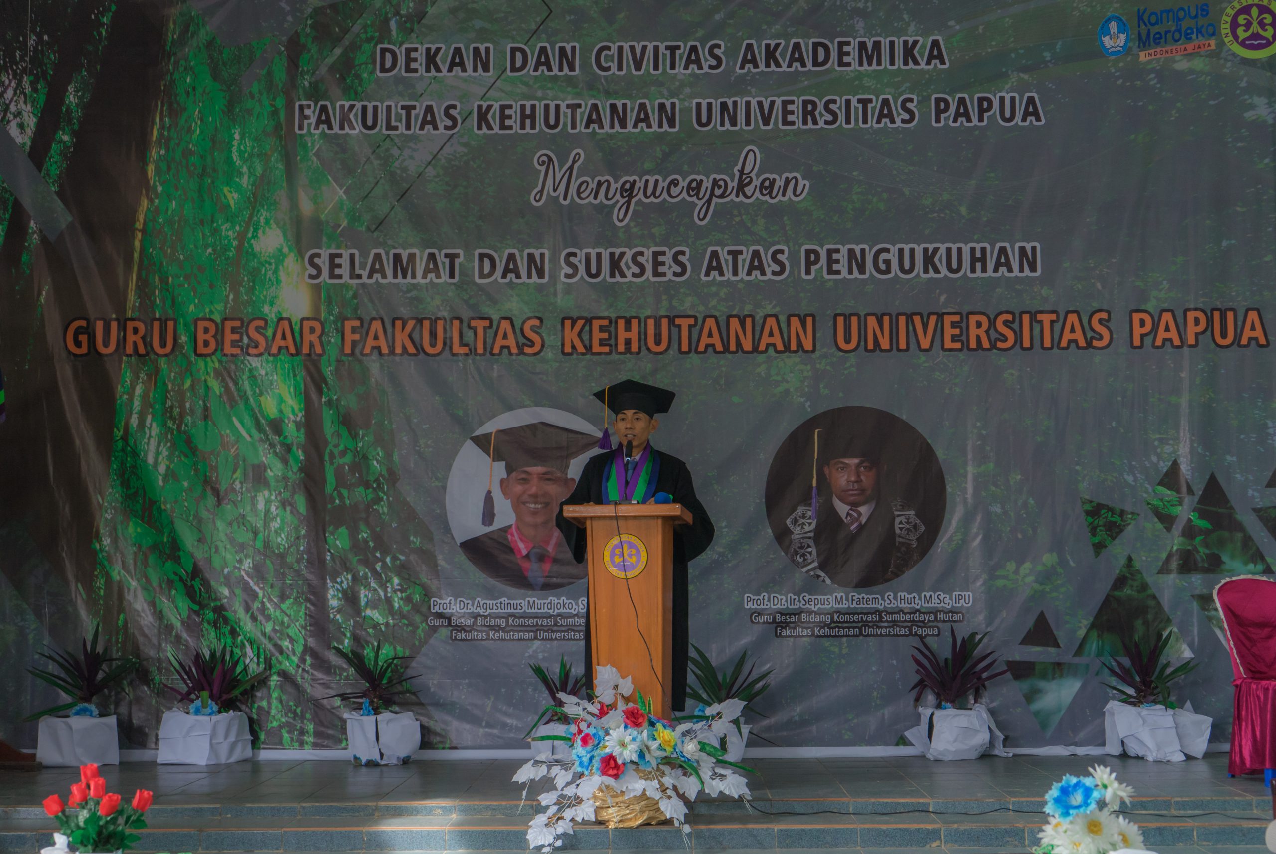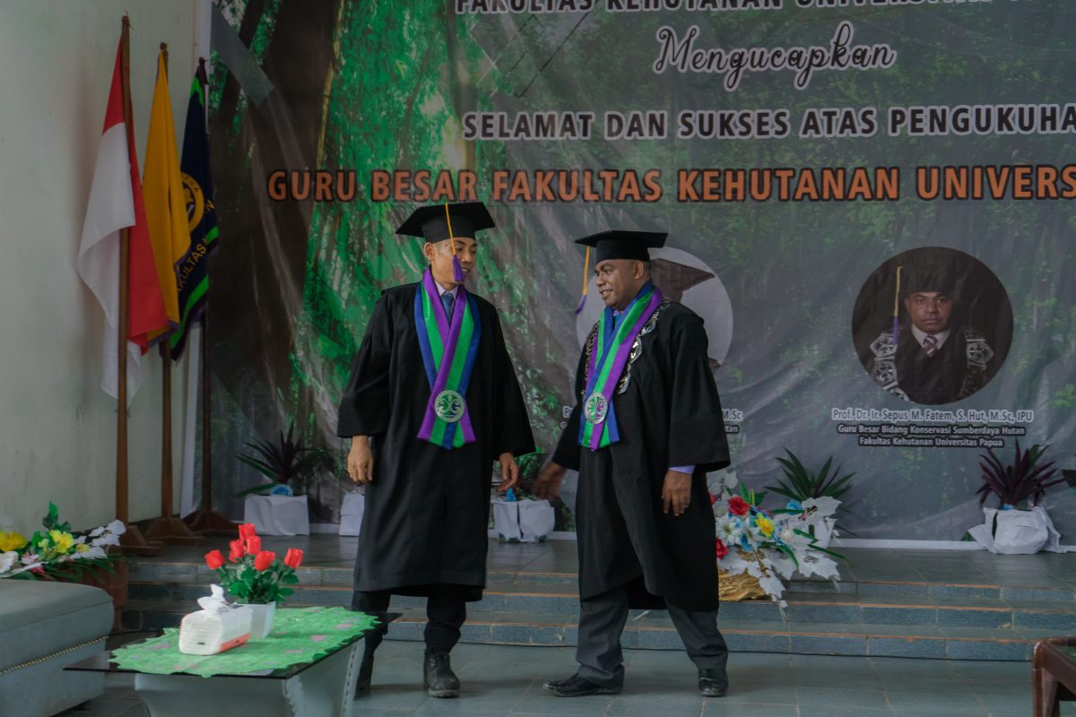 Fahutan Pos – Fakultas Kehutanan kembali menoreh sejarah dalam kemajuan pendidikan di tanah Papua, dimana pada hari ini, telah dikukuhkan dua Guru Besar dalam bidang keahlian Konservasi Sumber Daya Hutan. Kedua Guru Besar yang berbahagia di hari ini atas capaian tertinggi karier akademik (profesor) tersebut adalah Profesor DR. Agustinus Murdjoko, S.Hut., M.Sc dan Profesor DR. Sepus Marten Fatem, S.Hut., M.Sc., IPU. Pencapaian ini tidak terlepas dari karya dan kontribusinya dalam pengembangan ilmu pengetahuan dan riset, inovasi dalam dunia pendidikan di Tanah Papua.