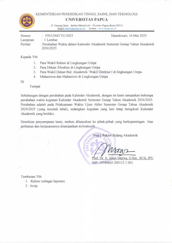 Perubahan Waktu dalam Kalender Akademik Semester Genap T.A. 2024-2025