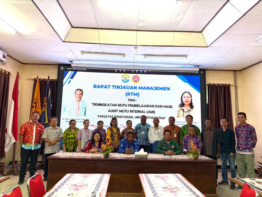 Manokwari — Fakultas Kehutanan Universitas Papua (UNIPA) melaksanakan Rapat Tinjauan Manajemen (RTM) Fakultas Kehutanan periode tahun 2026 yang berlangsung pada Jumat, 20 Februari 2026, di Ruang Auditorium Fakultas Kehutanan UNIPA. Acara tersebut dihadiri oleh Dekan, Wakil Dekan, Pimpinan GPM, korpro, dan pimpinan unit di Fakultas Kehutanan.